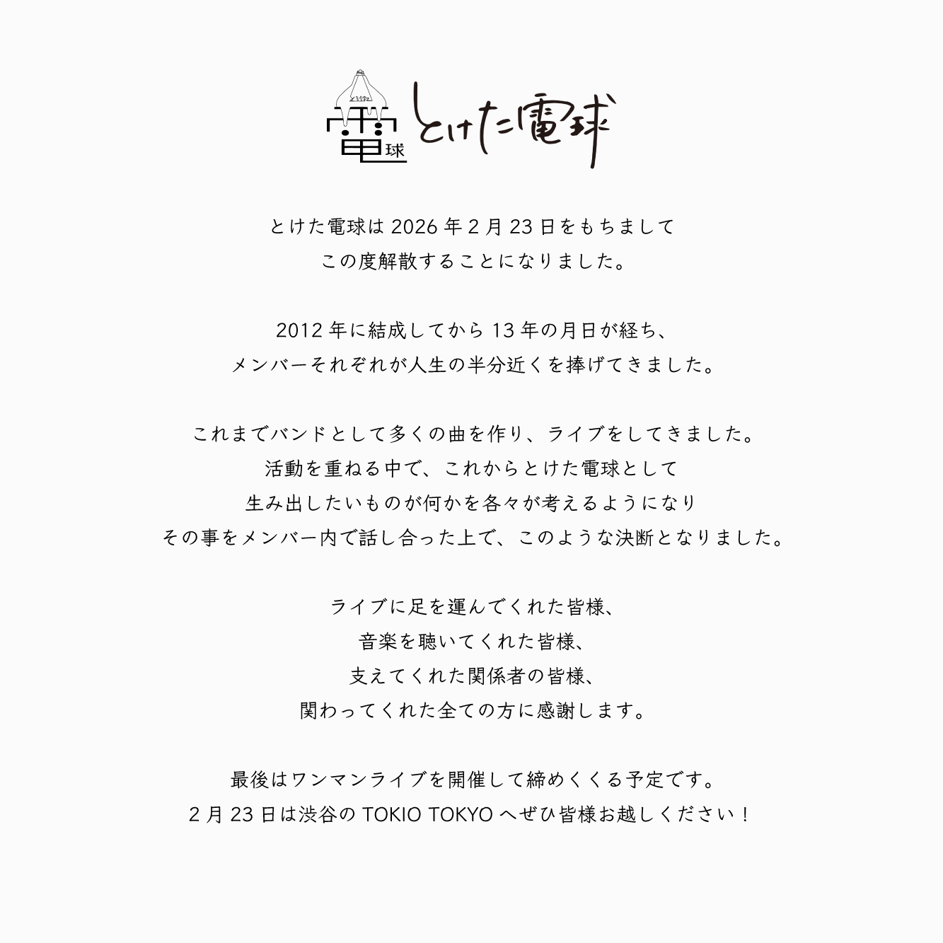 とけた電球は2026年2月23日をもちまして、この度解散することになりました。